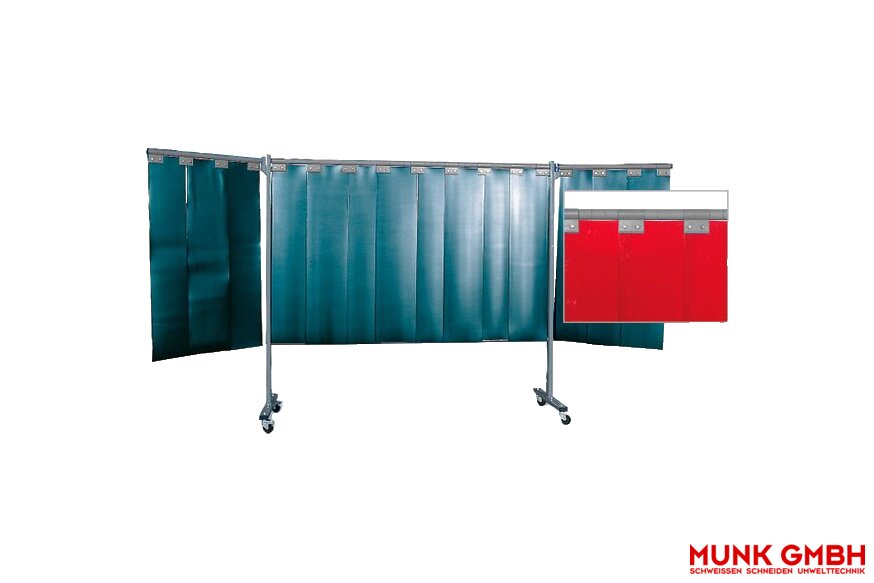 Produktinformationen "3-teilige Schutzwand mit Schweißerschutzlamellen, rot, 300 x 3 mm"