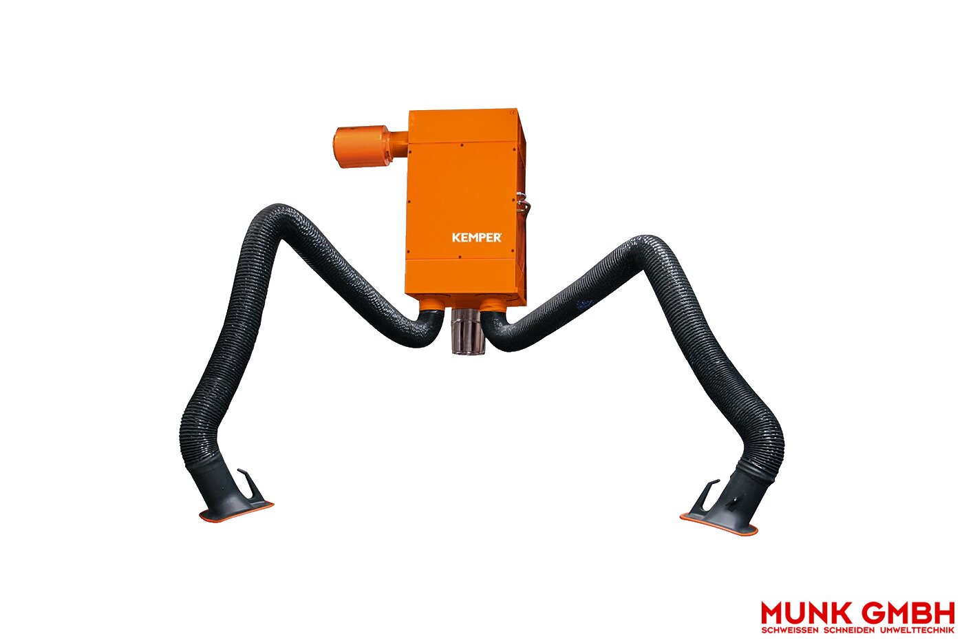 - Ausführung: Patronenfilter einschließlich Wandhalterung, 2 Filterpatronen mit PTFE-Membran (Abscheidegrad ›99,9 %), BGIA-Klassifikation L und M, differenzdruckabhängige Abreinigungsautomatik über Rotationsdüsen, Druckluftanschluss für zentrale Druckluftversorgung, Staubsammelbehälter, Control-Box mit Ein-/Aus-Schalter, Ventilator • Gerät einschließlich 1 bzw. 2 Absaugarme in Schlauchausführung mit innenliegendem Parallelogramm-Trägergestänge mit Federunterstützung und einem Glasfasergewebeschlauch Ø 150 mm mit PVC-Beschichtung und eingeschweißter Stahldrahtspirale sowie Absaughaube mit Drosselklappe • Um 360° drehbare Absaughaube in jede Richtung schwenkbar • Die Absaugarme können innerhalb ihrer Reichweite in jede gewünschte Position gebracht werden, die dann freitragend beibehalten wird • Ventilatorleistung: 3000 m³/h • Motorleistung: 1,5 kW, 3 x 400 V / 50 Hz